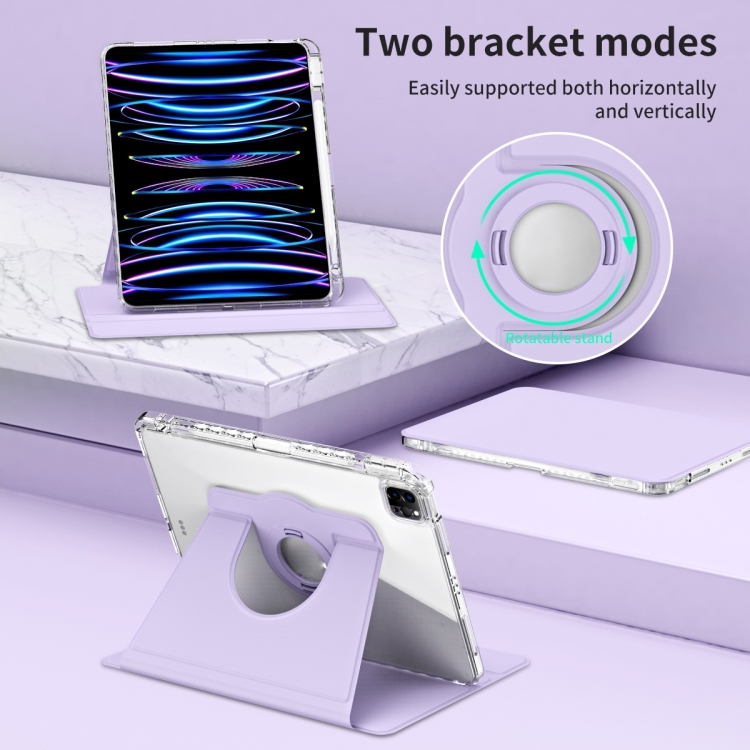 Funda para iPad Pro 11 (2024) Piel Acrílica Transparente Desmontable Rotación 360 (Morado Claro)