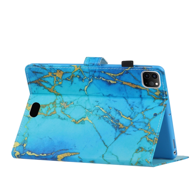 Funda de Cuero Inteligente para iPad Pro 11 (2024) con Costuras de Colores (Mármol Chapado En Oro)