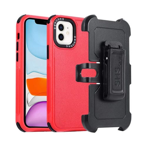 Funda para teléfono iPhone 11 3 en 1 PC con funda deslizante TPU (Rojo + Negro)