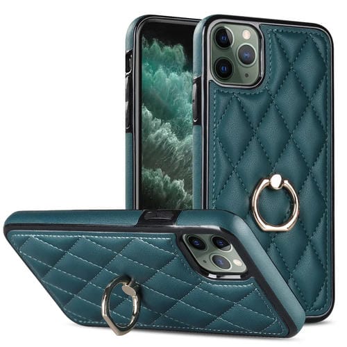 Funda para iPhone 11 Pro Max Rhombic PU Cuero con Soporte para Anillo (Verde)