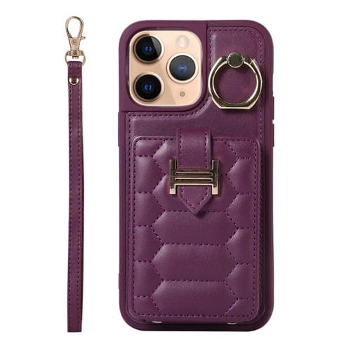 Funda para iPhone 11 Pro Max Vertical Card Bag Ring Holder con Doble Cordón (Morado Oscuro)