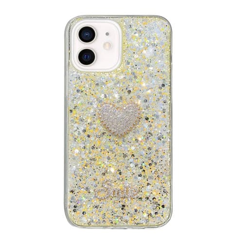 Funda para teléfono TPU Epoxi iPhone 12 Corazón de Diamante y Lentejuelas Estrelladas (Amarillo)
