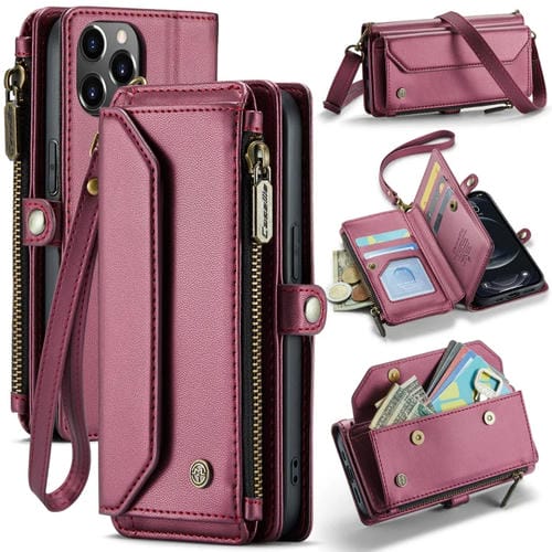 6. 10 ranuras para tarjetas + 2 ranuras para efectivo + 1 monedero con cremallera + Correa de hombro larga + correa de mano corta (basada en la imagen)