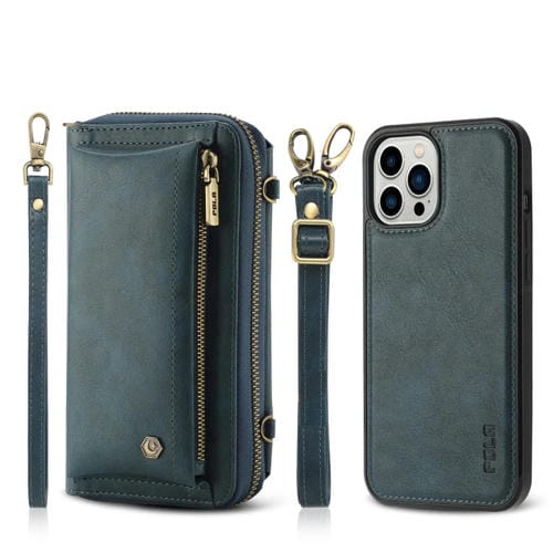 Funda de Cuero para iPhone 12 Pro Max Crossbody con Billetera y Cremallera Multifuncional (Verde)
