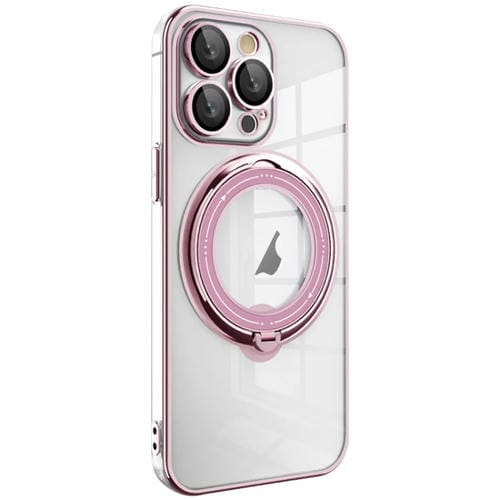Estuche para teléfono iPhone 12 Pro Max Magsafe soporte rotación 360 grados a prueba de golpes (Rosa)