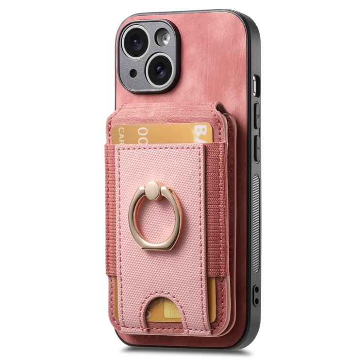 Funda de Teléfono iPhone 15 Cuero con Bolsa de Tarjeta y Soporte Magnético Divisible (Rosa)