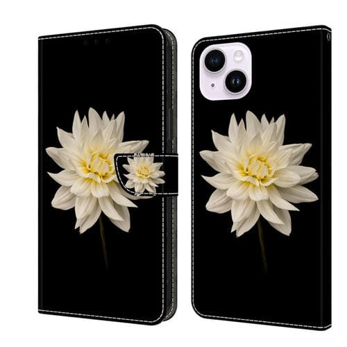 Funda Protectora de Cuero para iPhone 15 Plus Crystal 3D a Prueba de Golpes (Flor Blanca)