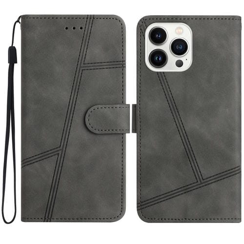 Funda para iPhone 16 Pro Cuero con Costuras al Tacto (Gris)