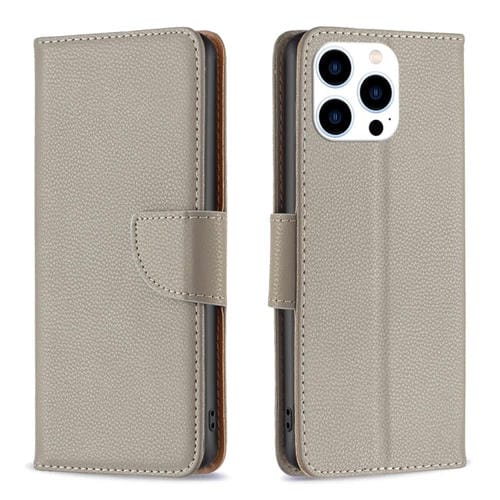Funda de Cuero para iPhone 16 Pro Max Litchi Texture Pure Color Flip (Gris)