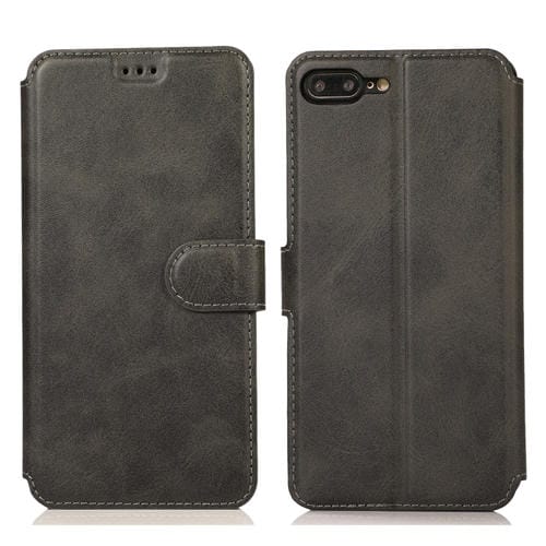 Funda para iPhone 7 Plus 8 Plus Cuero Tapa Horizontal Hebilla Magnética Soporte Ranuras Tarjetas Billetera Marco Fotos (Negro)