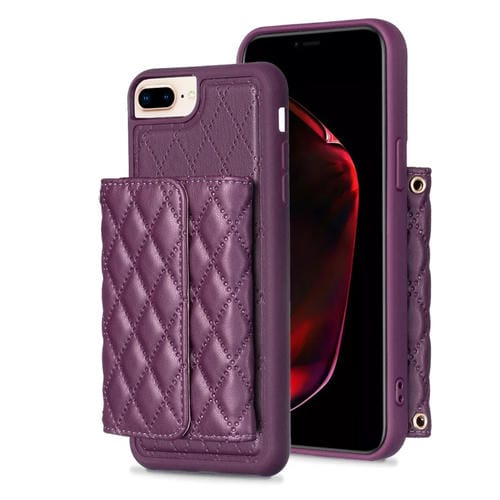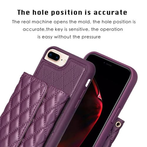 Estuche de Teléfono Cuero Rómbico para iPhone 7 Plus y 8 Plus con Billetera Horizontal (Púrpura Oscuro)