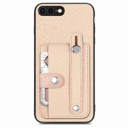 Funda para iPhone 7 Plus / 8 Plus Muñequera Kickstand Tarjeta Monedero Contraportada con Herramienta (Caqui)