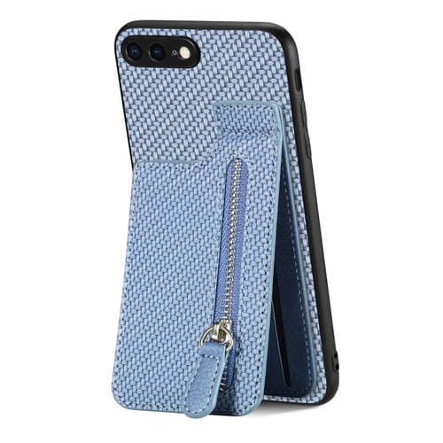 Funda de teléfono iPhone SE 2022/2020/7/8 con cremallera y tapa vertical de fibra de carbono (Azul)