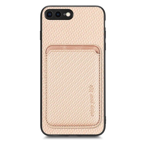 Funda de Teléfono Magnética Magsafe para iPhone SE 2022/2020/7/8 con Tarjeta Cuero Fibra de Carbono (Caqui)