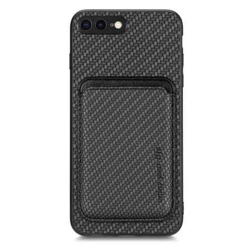 Funda de Teléfono Magnética Magsafe Apple iPhone SE 2022/2020/7/8 con Tarjeta Cuero Fibra de Carbono (Negro)