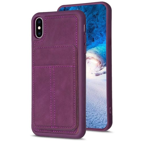Estuche para Teléfono Bf28 para iPhone X Xs con Bolsa para Tarjeta Esmerilada y Soporte (Púrpura Oscuro)