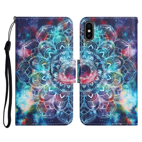 Estuche de Cuero para iPhone X Xs con Tapa Horizontal Soporte Ranura Tarjeta Billetera (Mandala Estrellada)