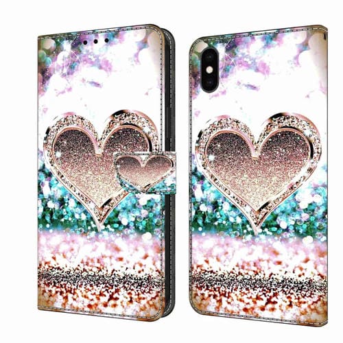 Funda Protectora de Cuero iPhone Xs Max Crystal 3D Corazón de Diamante Rosa