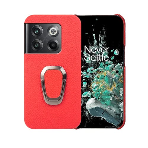 Funda de Cuero Genuino para OnePlus Ace Pro / 11T con Ring Holder y Textura Litchi (Rojo)