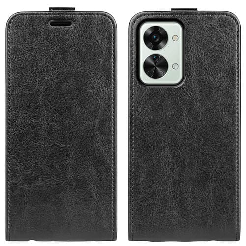 - 1x Funda de Cuero Vertical Flip para OnePlus Nord 2T 5G R64 Textura (Negro)