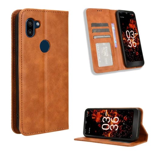 Funda para Orbic Fun + 4G Cuero Textura Retro con Hebilla Magnética (Marrón)