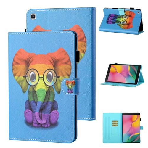 Estuche para Samsung Galaxy Tab A 8.0 (2019) T290/T295 Cuero Abatible Horizontal Con Soporte y Ranura (Elefante Colorido)