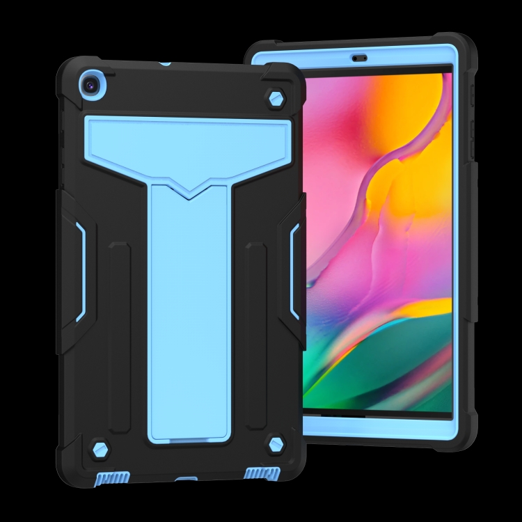 Soporte en Forma de T + Funda Protectora Plana de Silicona para Samsung Galaxy Tab A8.4 T307 (2020) (Negro + Azul)