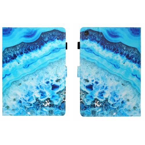 Funda para Tablet Samsung Galaxy Tab A9 de PU con Costura y Dibujo Coloreado Función Suspensión (Mármol Azul)