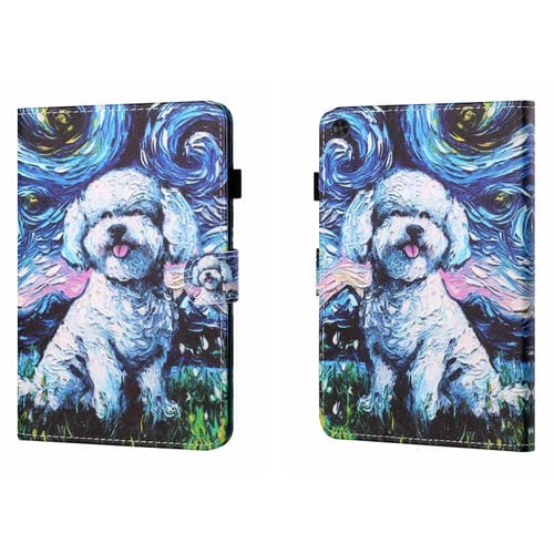 Funda para Tablet Samsung Galaxy Tab A9 PU con Dibujo Coloreado y Función de Suspensión (Perro con Pintura al Óleo)