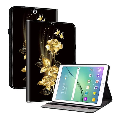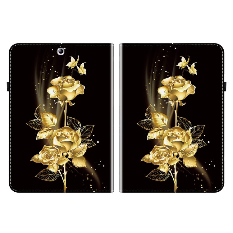 Funda para Tablet Samsung Galaxy Tab S2 9.7 T810 T815 T813N Cuero Pintado Textura de Cristal (Mariposa Dorada Rosa)