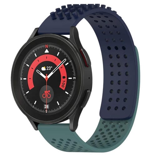 Correa de Reloj silicona para Samsung Galaxy Watch 5 Pro 45mm 20mm con agujeros transpirable (Azul Medianoche + Verde Oliva)