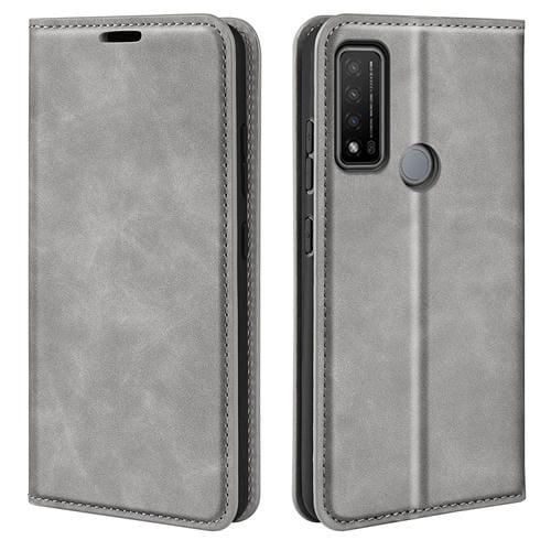Funda de Cuero Magnética para TCL 20 R 5G con Soporte y Billetera (Gris)