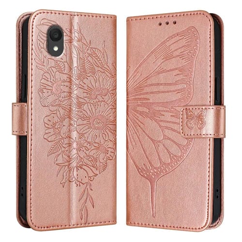 Funda de Teléfono para TCL 201 Cuero con Mariposa en Relieve (Oro Rosa)