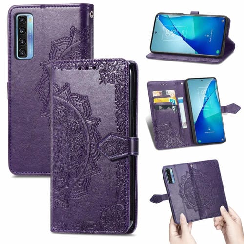 Funda de Cuero Horizontal Flip para TCL 20S Mandala Flower con Soporte, Ranura para Tarjeta y Billetera (Púrpura)