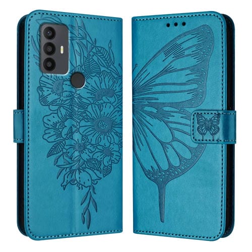 Funda para TCL 30 Se de Cuero con Mariposa en Relieve (Azul)