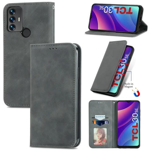 Funda Flip Horizontal para TCL 30 Se Retro Siente la Piel (Gris)