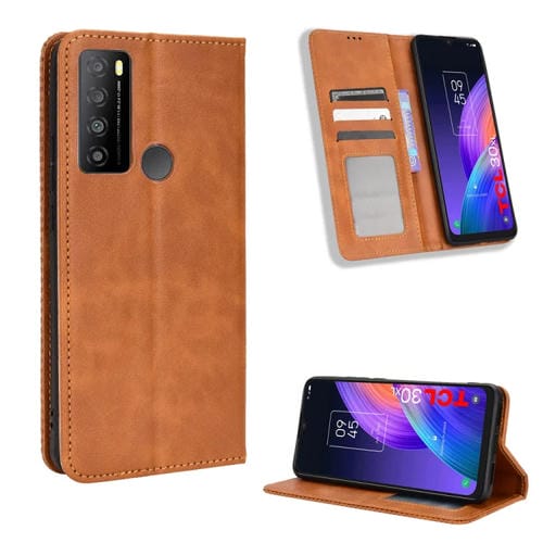 Funda de Cuero para TCL 30 XL con Hebilla Magnética Textura Retro (Marrón)