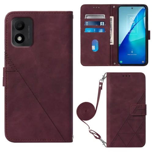 Funda de Cuero para TCL 303 Crossbody 3D con Tapa En Relieve (Rojo Vino)