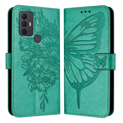 Funda para Teléfono TCL 305/306/30 Se Al02 Cuero con Mariposa en Relieve (Verde)