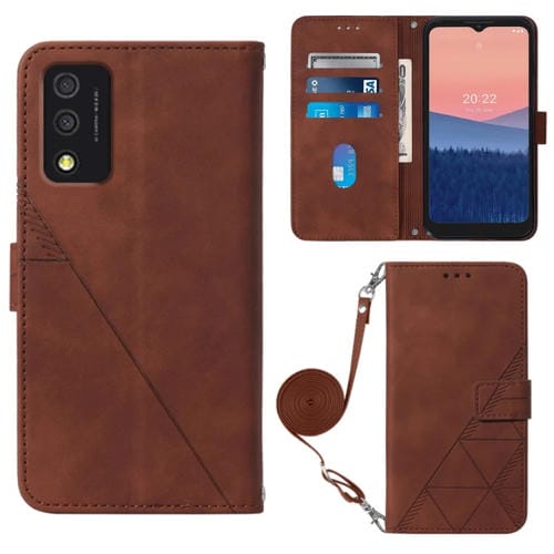 Funda de Cuero Crossbody 3D para TCL 30T T603Dl con Tapa En Relieve (Marrón)