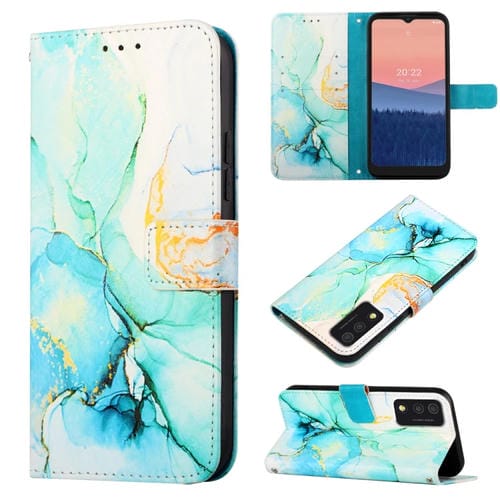 Funda de Cuero con Tapa para TCL 30T T603Dl Pt003 Patrón de Mármol (Verde)