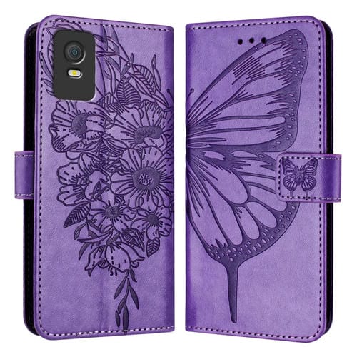 Funda de Teléfono TCL 403 Cuero con Mariposa en Relieve (Púrpura Claro)