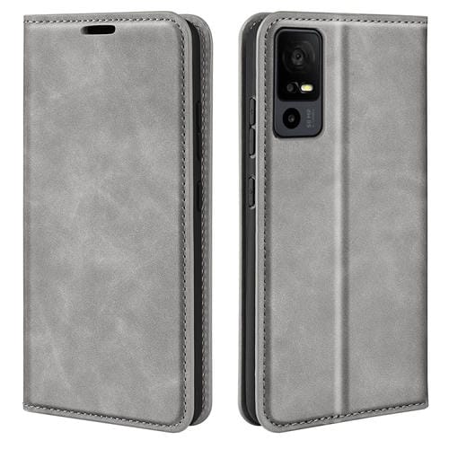 Funda de Cuero para TCL 40R con Succión Magnética y Diseño Retro (Gris)