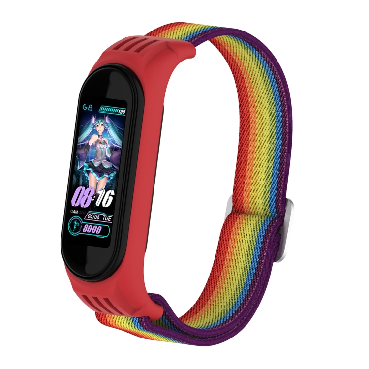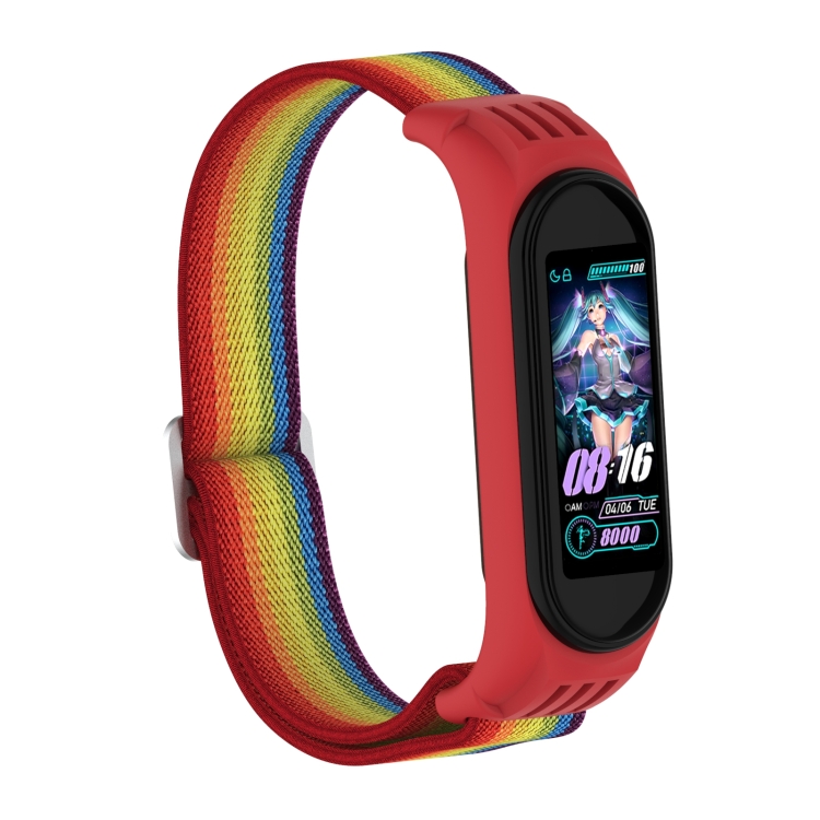 Para Xiaomi Mi Band 3/4/5 Band de reloj elástica de hebilla de 8 en forma (Rainbow)