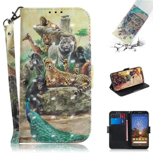 Funda de Cuero con Tapa Horizontal para Google Pixel 3A XL con Pintura 3D Patrón Zoológico y Billetera