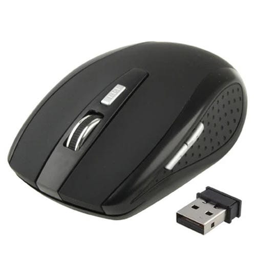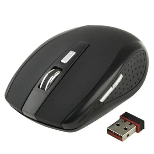 - 1x Ratón Óptico Inalámbrico 6D 2.4 GHz 800-1600 dpi con Mini Receptor USB (Negro)