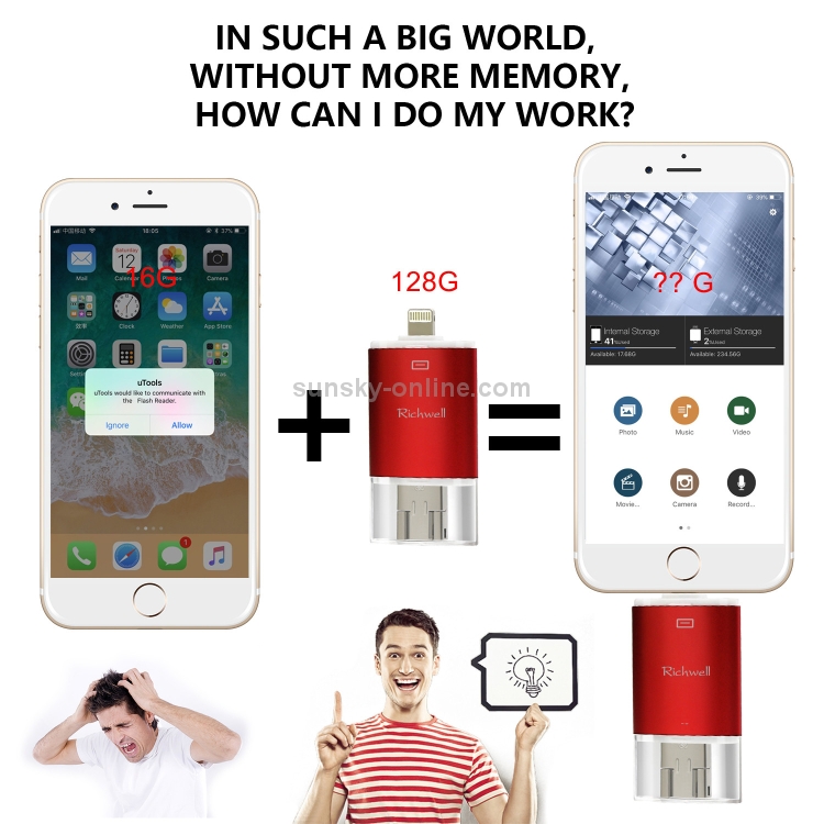 Disco Flash Richwell 3 En 1 16G Tipo-C + 8 Pines + USB 3.0 Push-Pull Otg (Negro)