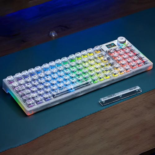 • 1x Teclado Mecánico Aula F98 Pro 99 Teclas con Cable, 2,4G, Bluetooth, RGB, Eje Ice Soul (Blanco Transparente)