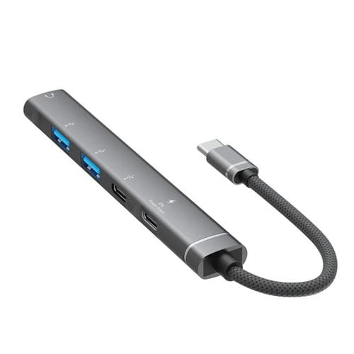 - Interfaz de entrada Tipo C; salidas: 1 x Carga Tipo C, 1 x datos Tipo C, 2 x USB 2.0, Conector de Auriculares de 3,5 mm; plug and play; diseño ligero y Portátil
