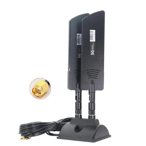 Antena Externa para Enrutador 5G 42 dBi Amplificador Cobertura Señal WIFI Largo Alcance Exteriores SMA Macho (Negro)